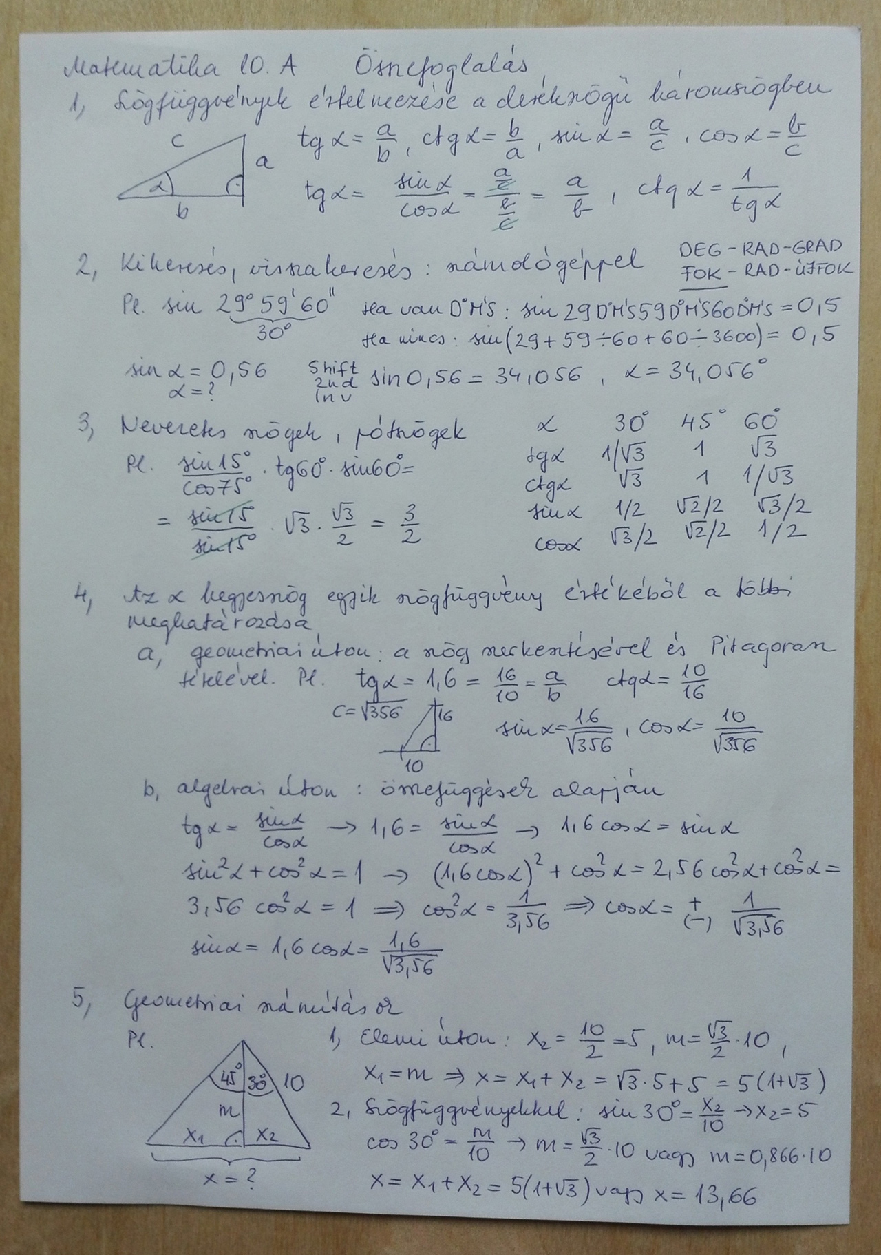 Nézzétek meg és dolgozzátok fel a most ingyenessé tett Mateking.hu honlap Szinusz, Koszinusz derékszögű háromszögekben című fejezetét!